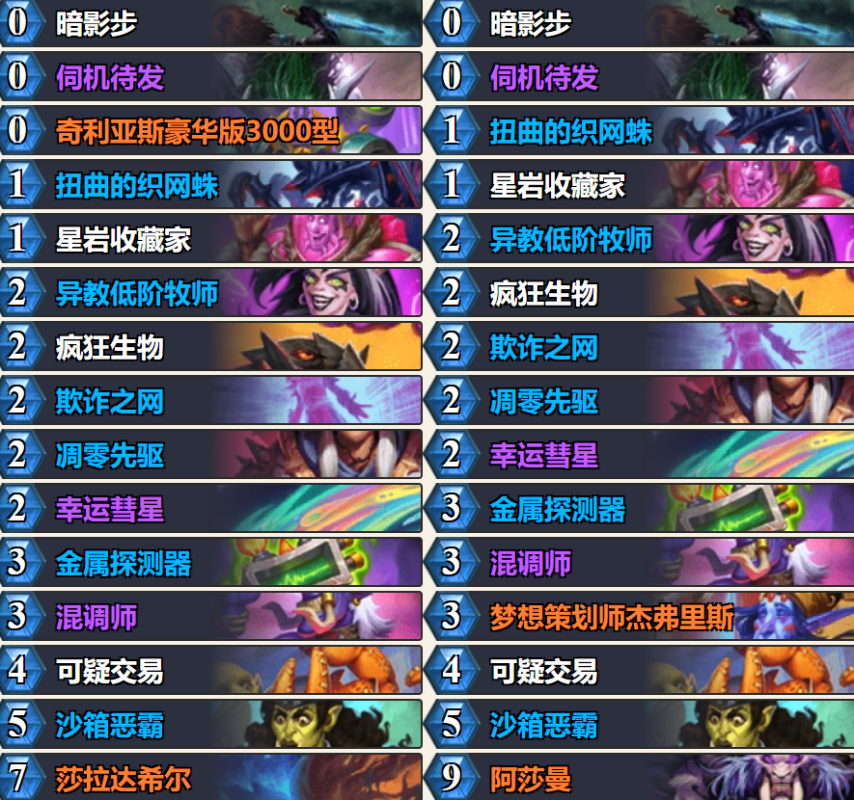 最后是天梯上分卡组,我今天先贴一下标准模式的构筑。卡组攻略的视频版可以关注我B站或某音的【炉石东少】
