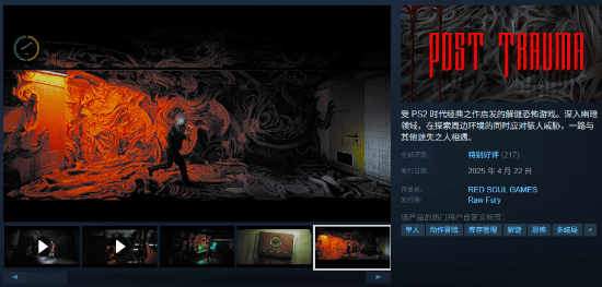 Antonsson所指的是Raw Fury于4月22日发布的心理恐怖游戏《创伤之后(Post Trauma)》,由开发商Red Soul Games打造。这款灵感来自PS2时代经典的恐怖解谜作品,需要玩家在名为“幽暗领域”的神秘环境中探索、逃生并邂逅其他迷失角色。