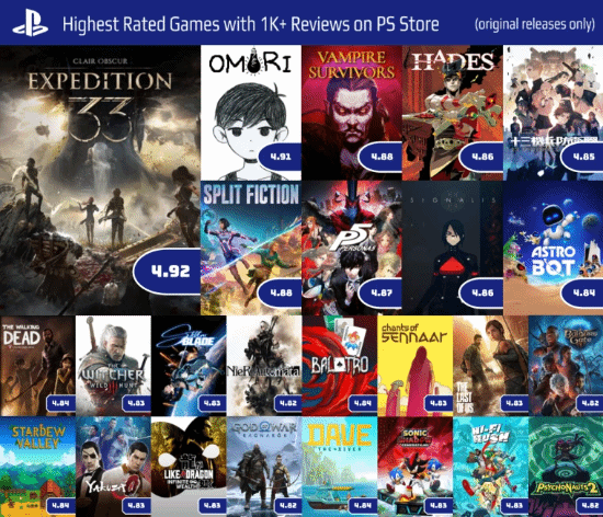 而当《33号远征队》发售后,本作迅速获得玩家高评价,最高时以4.92的玩家评分成为PS评分最高作,目前则稍有回落,降至4.91分——与《OMORI》平齐成为并列第一的作品。