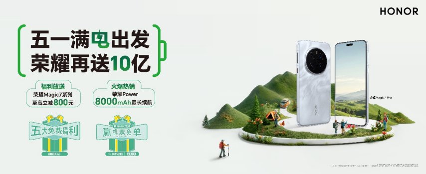 “五一满电出发,荣耀再送10亿”补贴活动也已开启,在“国补 厂补”双重补贴下,荣耀Magic7系列手机至高立减800元,售价下探至3799元起。10” Magic78003799