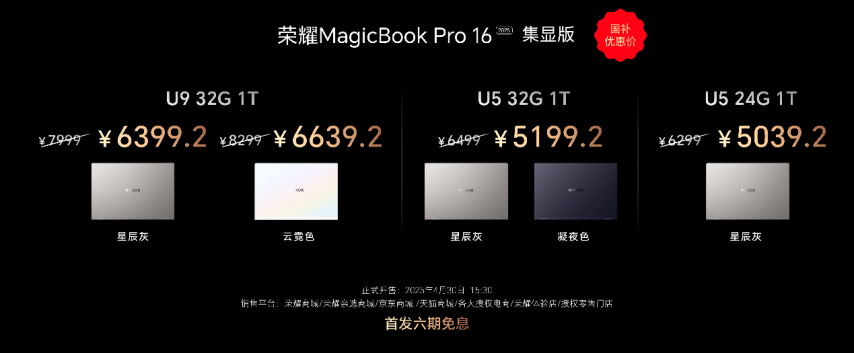荣耀MagicBook Pro 16 2025提供独显和集显两种配置,满足用户的不同预算需求。其中,搭载RTX 5070独立显卡的荣耀MagicBook Pro 16 HUNTER版2025国补到手价9499元起,4月30日21:00全渠道首销;集显版国补到手价5039.2元起,4月30日15:30全渠道首销,想抢先体验的用户可以抓紧时间入手。MagicBook Pro 16 2025RTX 5070MagicBook Pro 16 HUNTER2025949943021:005039.243015:30