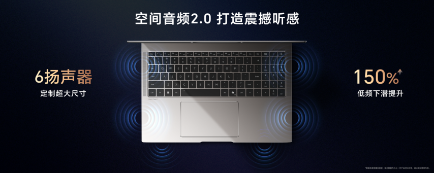 荣耀MagicBook Pro 16 2025空间音频软硬件全面升级,整机定制超大尺寸六扬声器设计,低频下潜提升150%,全新算法实现至高105°宽广声场,提供更震撼听感。空间音频2.0支持对FPS、赛车、MOBA等不同类型游戏进行针对性的调校优化,带来更精准的听声辨位,更强的沉浸感,让用户深度体验到游戏细节。MagicBook Pro 16 2025150%105°2.0FPSMOBA