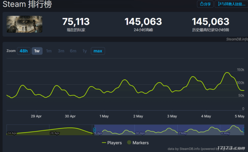是的,正如大家所见,这款于4月24日发售的JRPG作品,在五一期间的同时在线人数再次创下新高,从之前的12万 跃升至14万 ,现已杀入Steam平台回合制游戏在线峰值排行榜的前三名,仅次于《博德之门3》和《勇士之地》。