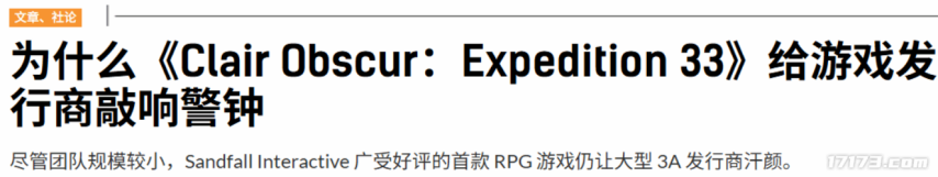 这也难怪在《光与影:33号远征队》销量突破百万之后,国外的游戏媒体纷纷把Sandfall Interactive的成功,上升到“给3A大厂敲警钟”的罕见高度了。