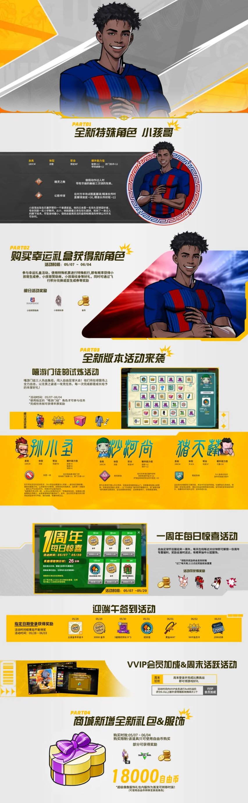 自由足球怀旧服5月7日一周年版本更新!参与嘻游门徒活动三种嘻游角色任选!老玩家回归享特权福利,每日在线惊喜福利拿到手软!更有新角色小孩哥强势登场!自由足球怀旧服5月7日一周年版本更新!参与嘻游门徒活动三种嘻游角色任选!老玩家回归享特权福利,每日在线惊喜福利拿到手软!更有新角色小孩哥强势登场!