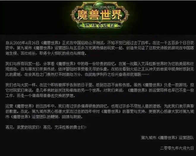 前期九城对魔兽世界也是倾尽了心力,仅用6个月完成《魔兽世界》的中文本地化,包括翻译、配音、服务器架设。