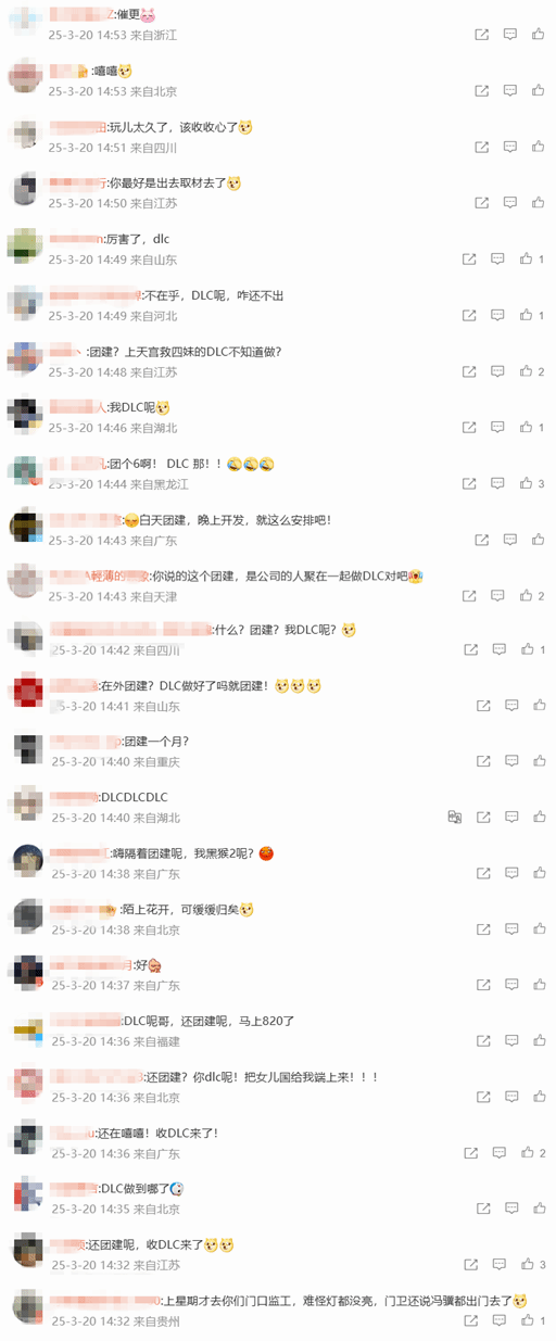 在评论区,玩家们祝贺的同时也开始了“催更”:我DLC呢?