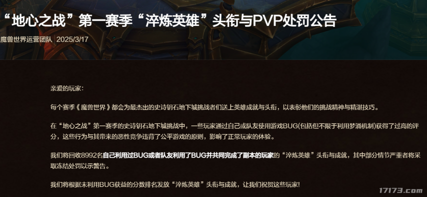 但让人哭笑不得的是,等到魔兽第一赛季结束,网易正儿八经地从源头回溯数据,并公布了一份包含8992名恶意使用BUG上分玩家的‘封神榜’后……