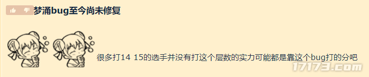 小弟只能告诉你,在这个BUG被发现前,大部分国服高层冲分队伍普遍卡在15-17层。虽然不能说跟外国队伍有明显的差距,但在通关极限高层的队伍数量上,确实是稍逊了人家一筹。