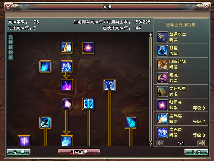 3、元神宗师兑换:使用非绑定金钱在“元神宗师”处兑换元神点,助您更快掌握心仪技能。