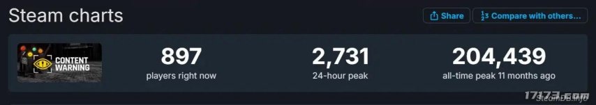 通常来说,这类整活沙雕游戏在上手时虽然会带给玩家很多欢乐,但是由于内容量不足,在玩家最初的热情消耗殆尽后,游戏的人气就会急转直下。就比如去年发售大火的同类游戏《内容警告》,游戏同时在线玩家数量一度突破了20万人,还不到一年游戏每天玩家数量已经不足3000人。通常来说,这类整活沙雕游戏在上手时虽然会带给玩家很多欢乐,但是由于内容量不足,在玩家最初的热情消耗殆尽后,游戏的人气就会急转直下。就比如去年发售大火的同类游戏《内容警告》,游戏同时在线玩家数量一度突破了20万人,还不到一年游戏每天玩家数量已经不足3000人。