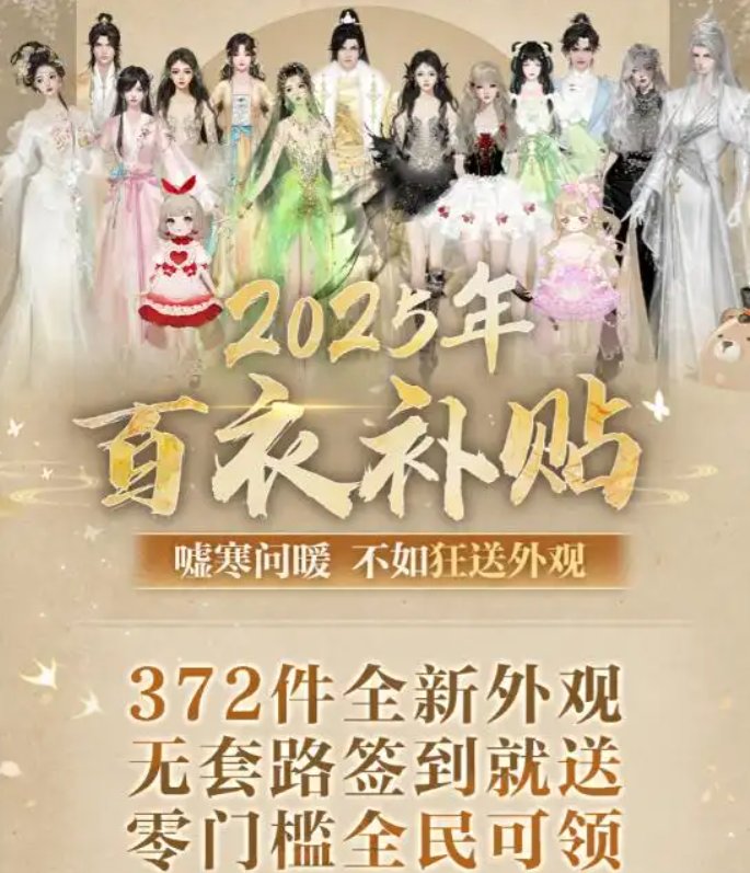 从2024年12月25日到2025年12月31日,玩家每天上线签个到,就能把总计372款全新外观(包含时装、坐骑、动作等)直接带走。