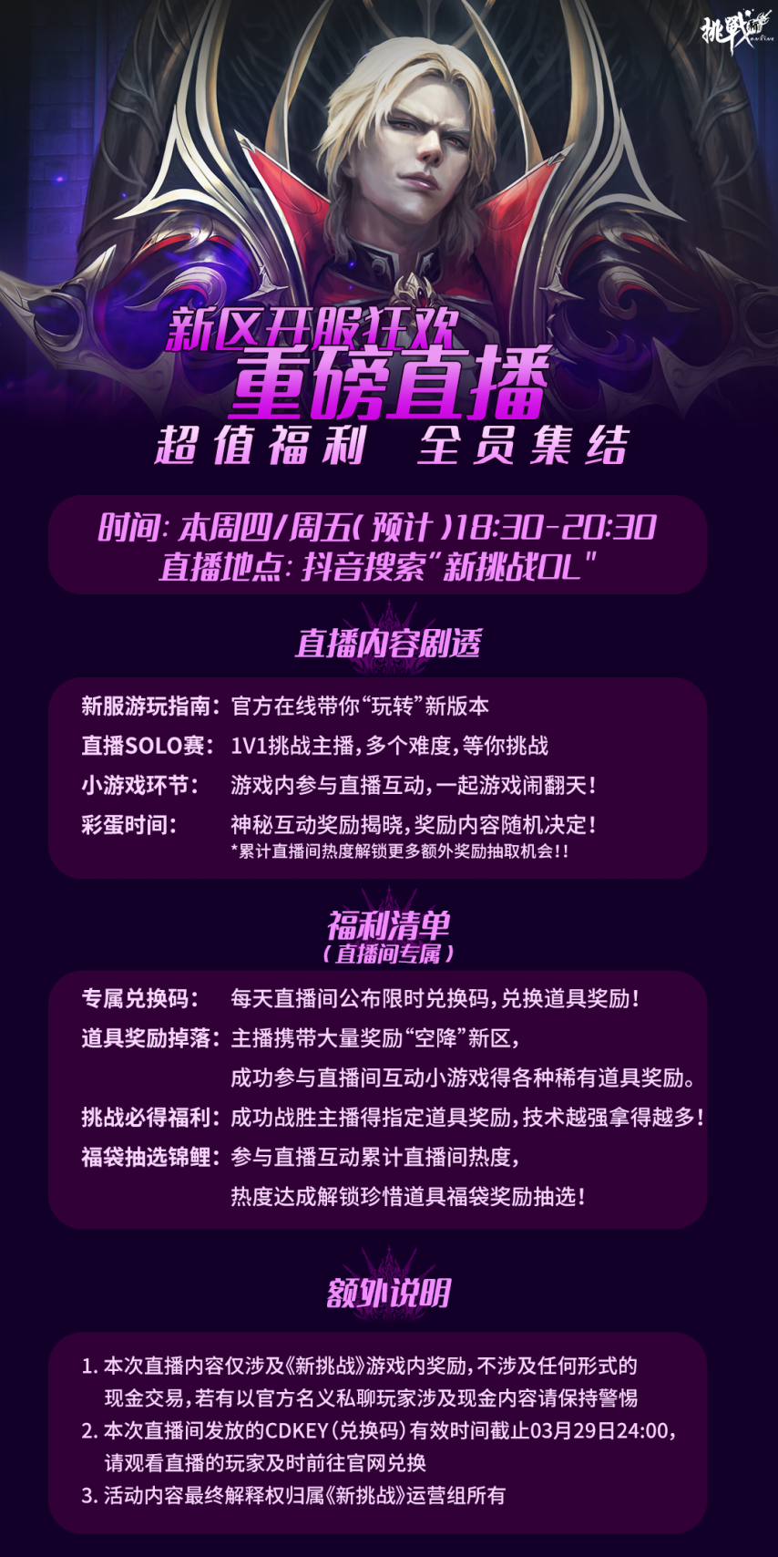 【新挑战】新区福利直播活动来袭
