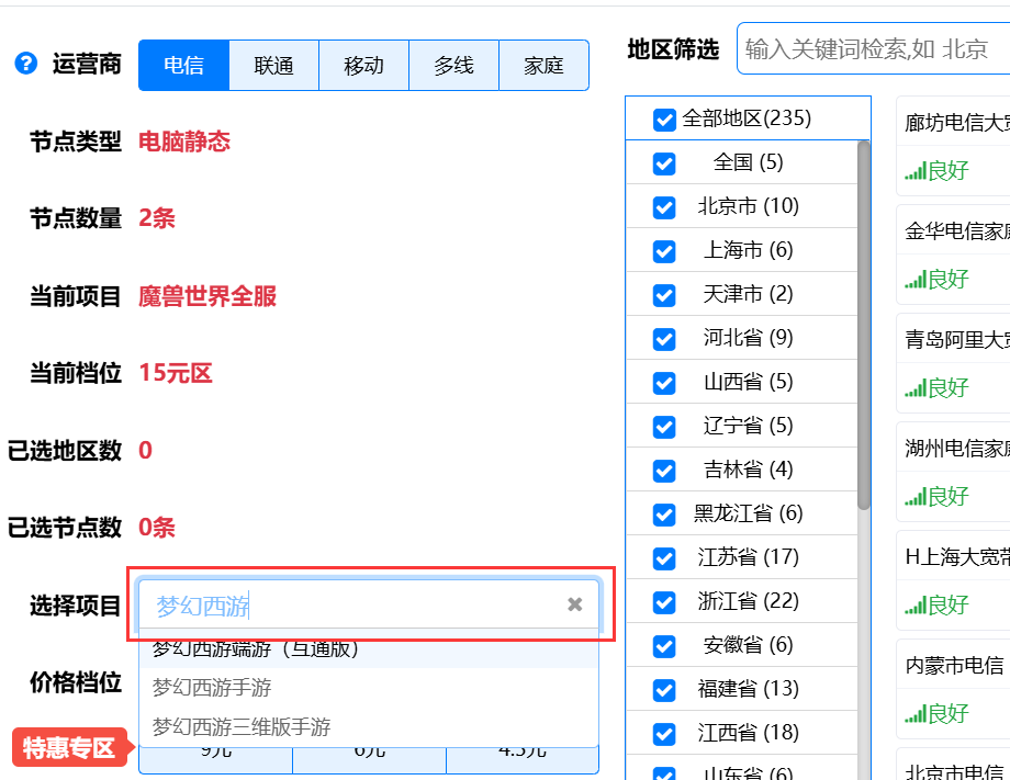 在 选择项目 栏输入新的项目,也可以顺便切换价格和地区,选择好之后 点击右下方 确认切换 即可。