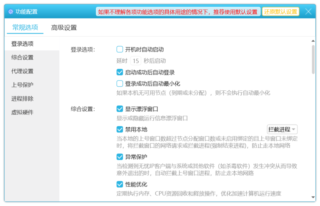 虚拟网卡MAC:默认开启,建议勾选。