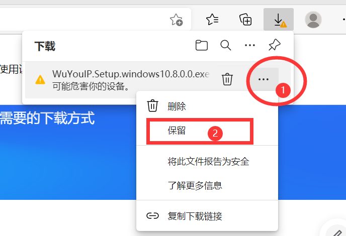 如果是Windows10默认浏览器会提示风险,需要以下操作