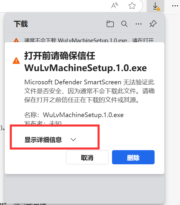 如果是Windows10默认浏览器会提示风险,需要以下操作