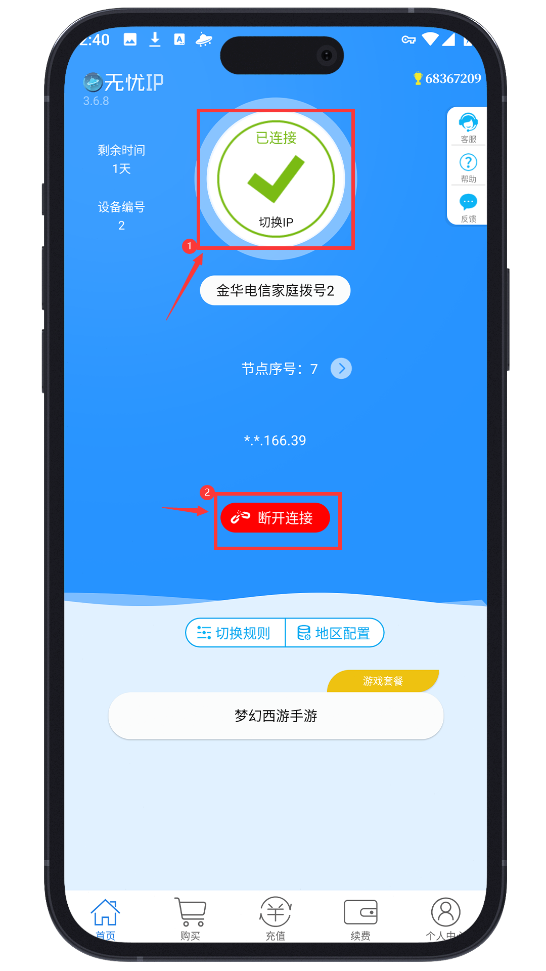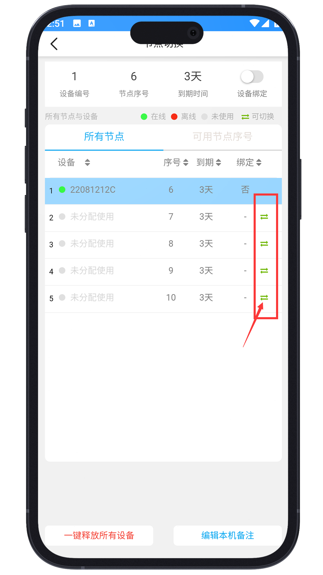 分配节点:每个新手机登录,只要账号下有空余节点都会自动分配一个节点,如果没有分配,点击 重新连接 就会自动分配节点。