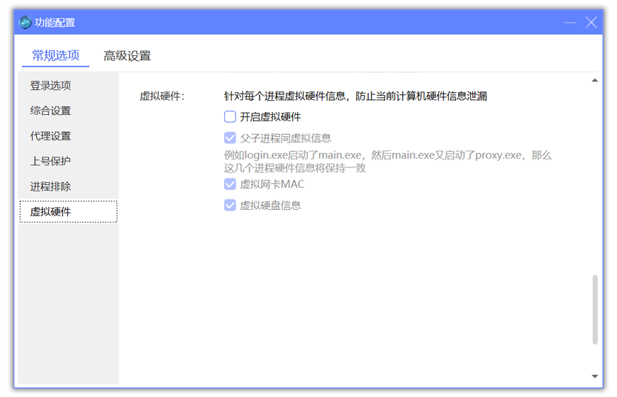 独家研发驱动级虚拟硬件,可虚拟MAC网卡、硬盘、CPU、主板等序列号,多开防封。