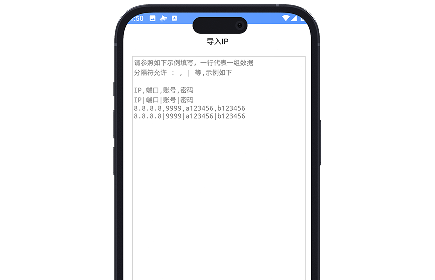 无忧行SK5(安卓版) 大小:28.63MB 下载量:19142 更新时间: 2025-05-01 支持平台:安卓手机、云手机、模拟器及所有安卓系统 本地下载 百度网盘下载 软件展示 软件介绍 免费安卓sock5代理工具,一键式管理Sock5代理IP,支持真机、云手机、模拟器等各类运用场景。 【一键导入】 将购买的Socks5 一键导入即可使用,支持批量导入多个IP,想换就换。 【代理指定app】 可代理指定App,不影响手机内其他应用网络,也可代理整个手机网络。 【一秒链接】 点击即可链接或断开。 【操作简单】 设置简单,操作便捷。 【批量检测】 可同时导入多个IP,同时批量检测IP网络。 【永久免费】 永久免费的安卓Socks5软件。