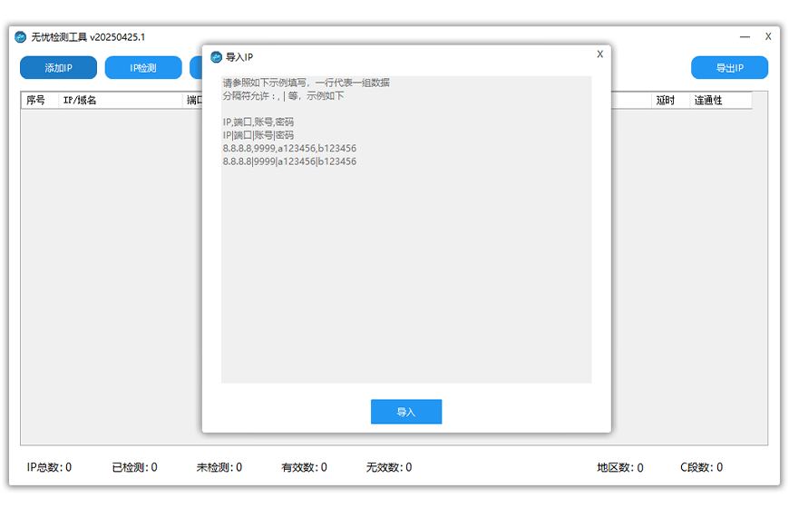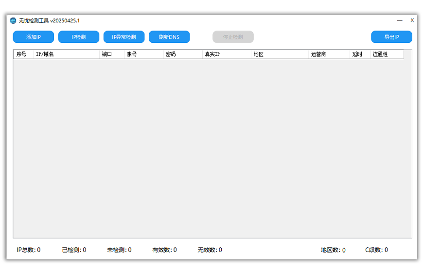 无忧sk5检测工具 大小:792.49KB 下载量:1716 更新时间: 2025-05-01 支持平台:所有Windows系统、虚拟机、模拟器、主板机 本地下载 百度网盘下载 软件展示 软件介绍 好用的sk5和http检测工具速度快、灵活性高、操作简便。 支持一键批量导入IP,一键批量检测,永久免费。
